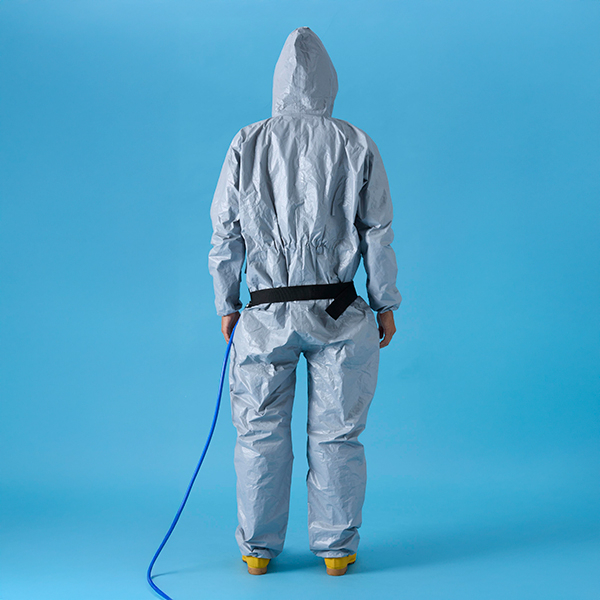 コンプレッサーから本製品内部へ空気を送ることにより、熱ストレス(ヒートストレス)の低減を目的とした防護服です。