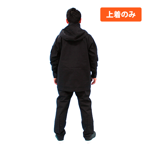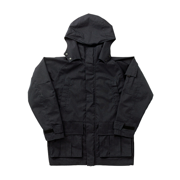 収納型フード/比翼付ファスナー/左右胸ポケット/左右カーゴポケット/左袖ポケット、ペン差し付/両脇ジッパー式ベンチレーション/袖口難燃面ファスナー付/ウエストアジャスター/裾ドローストリングス