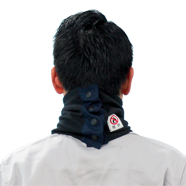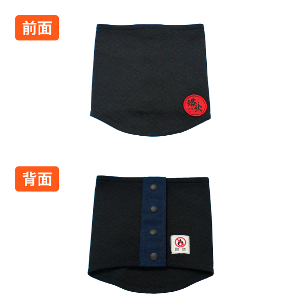 表地から裏地や糸、露出するすべて難燃素材を仕様した、難燃ネックウォーマーです。